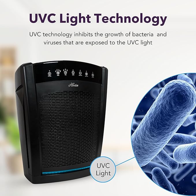 Hunter HP850 Air Purifiers for Home Large Room and Bedroom. True HEPA Air Purifier for Pets, Odors, Allergens, Smoke, Dust. UV Value Bundle w/Extra Filter, Cleans 2585 Ft² per hour. Black