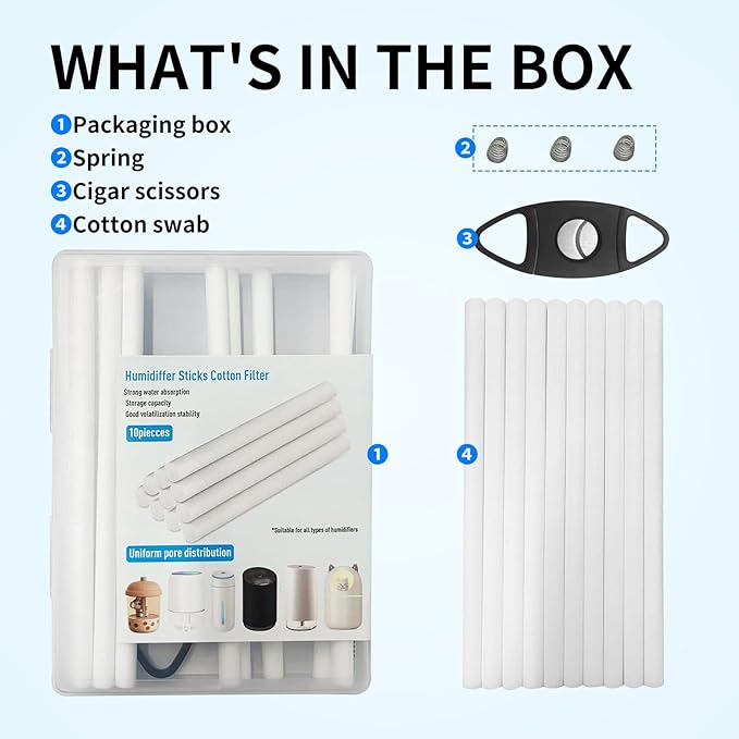 - Customizable Length: Trim cotton sticks easily with the included plastic cutter for a perfect fit in any humidifier.