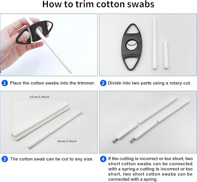 - Complete Maintenance Kit: 10 high-absorption cotton sticks (5.9 Inch x 0.3) + 1 adjustable cigar cutter + 3 extension springs.
