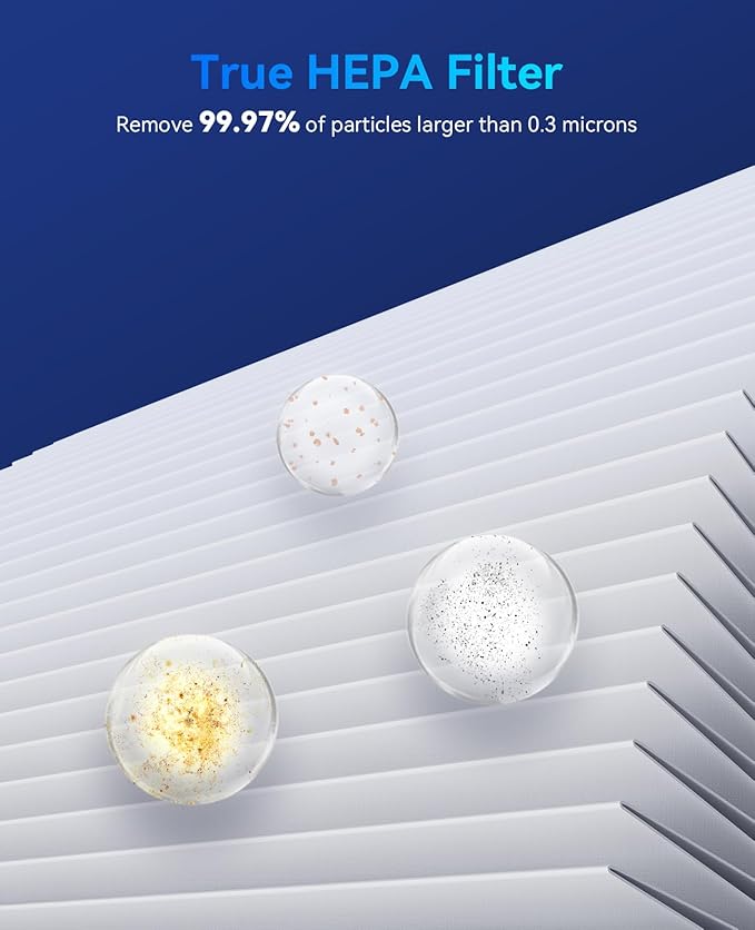 - ๐ต๐ต.๐ต๐ณ% ๐๐ถ๐ด๐ต-๐๐ณ๐ณ๐ถ๐ฐ๐ถ๐ฒ๐ป๐ฐ๐ ๐๐ถ๐น๐๐ฟ๐ฎ๐๐ถ๐ผ๐ป: H13 True HEPA filter layer is used, which meets the high-Efficiency Particulate Air (HEPA) standard. It can filter 99.97% of airborne particles larger than 0.3 microns