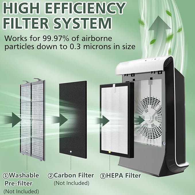 - 【EASY TO INSTALL】Replacing the filters with simple task that does not require any tools. It is recommended to replace HEPA filter every 6~8 months for the best performance.