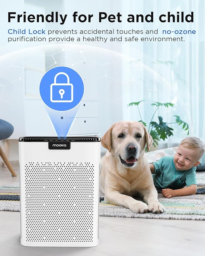 - FILTER REPLACEMENT REMINDER: This air purifier with washable filter has a filter change reminder function. When the filter reaches the end of its service life, the filter indicator lights up to remind you to replace the filter. You can also clean the pre-filter to extend the its service life. After installing the filter, press and hold the filter button for 3 seconds until you hear a beep to reset the filter reminder. Purchase MOOKA official replacement filter on Amazon to keep the optimal purification effect