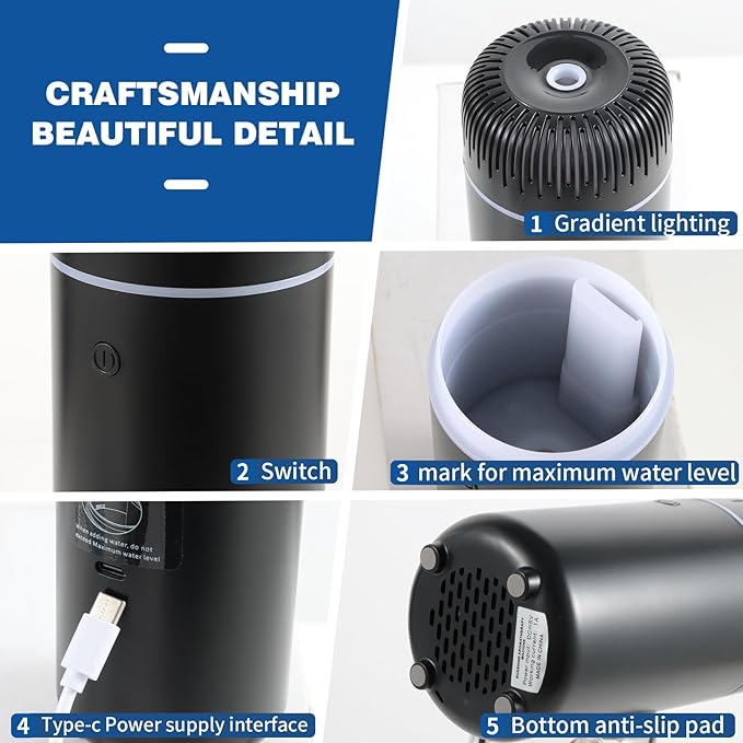 - Safe and Easy to Use - With auto-shutdown for low water levels, this diffuser guarantees safe operation. A simple press of a button unlocks the benefits of aromatherapy and a humidified environment. It's the ideal car diffuser humidifier for those who value safety and convenience.