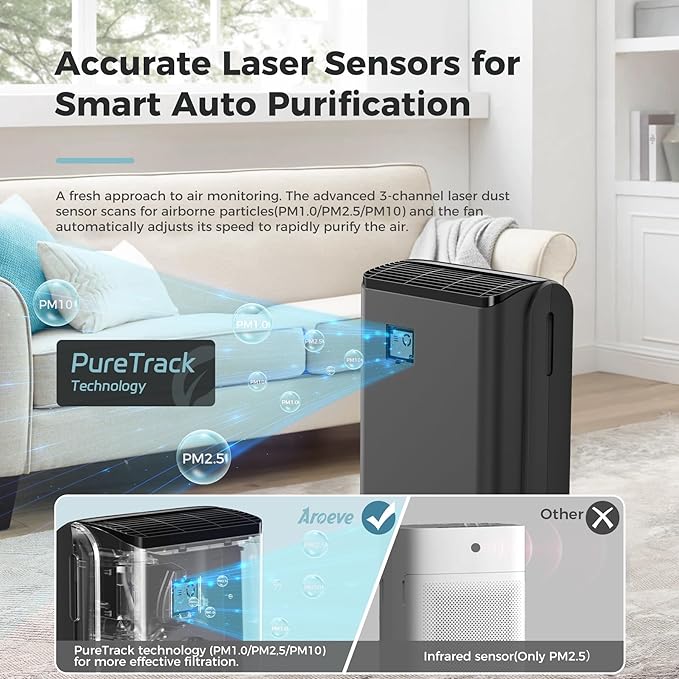 - Quiet and Calming: With advanced technology, this air purifier keeps noise levels close to a whisper at 23 dB. Choose the sleep mode at night for a peaceful rest. AROEVE MK07 eliminates the disturbance of typical air purifier sounds. Ideal for bedrooms, offices, or living rooms