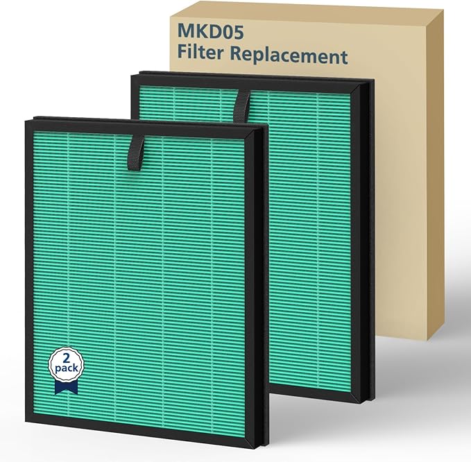 - Cost Effective 2 Pack: Using old filters will reduce the efficiency of air purifiers. To ensure your family's health, please replace the MK-D05 filter every 3-6 months according to the usage environment and "Replace" indicator on the MK-D05 air purifier