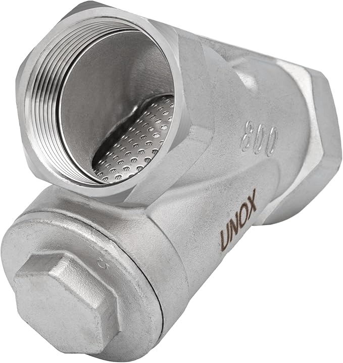 UNOX 3/4" Y-Type Stainless Steel Industrial Strainer - AISI 304 - Water Oil Filter for Plumbing Tools & HVAC Systems, Heavy-Duty Pipeline Protection, PN6/PN10 Rated