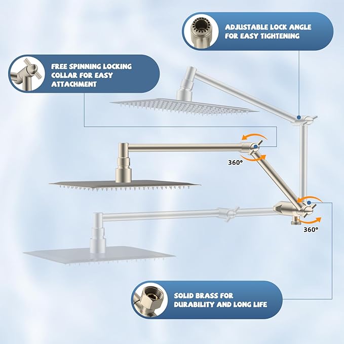 - Upgraded Metal 3-Way Diverter & Shower Hose: Our 3-way diverter allows you to switch between a handheld spray or rain showerhead individually or enjoy the luxury of double showerheads simultaneously. Unlike ordinary ones, ours seamlessly connects to the shower extension arm, eliminating leak, secure shower experience. The stainless steel 71-inch shower hose is made of odorless EPDM material and can be used in high-temperature environments, offering maximum durability and flexibility
