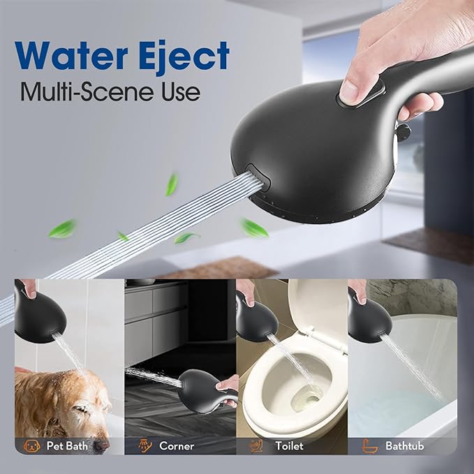 - Powerful Jet Cleaning Function: Powerful shower head converts low water flows into high pressure shower head, use jet mode to clean your bathtub, or toilet, foam on the walls, and soap scum on the floor, with 5ft stainless steel hose for easy to clean