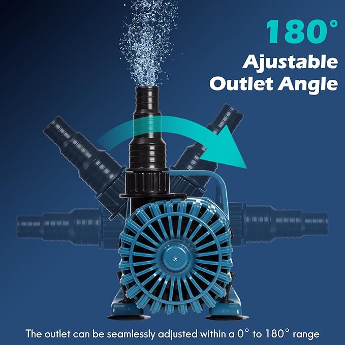 - ADJUSTABLE OUTLET FOR CUSTOM FLOW DIRECTION: The 180° seamless adjustable outlet allows you to change the direction of the water flow with ease. It’s ideal for positioning water toward specific features in fountains, waterfalls, or garden setups—making it simple to guide the flow where you want it without affecting flow rate.