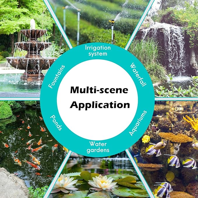 - DURABLE & SAFE DESIGN: Constructed with an ABS shell, copper-wire motor, and ceramic shaft, this pond water pump is built for durability and safety. It features thermal overload protection that automatically shuts off the pump when internal temperature reaches 221°F, adding extra reliability for outdoor and hydroponic use. It's safe for fish.