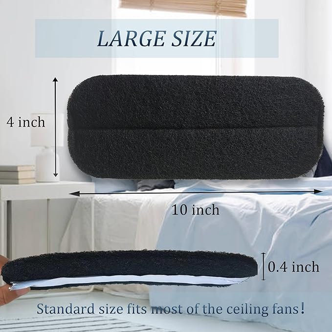 - LARGE SIZE: the ceiling fan filters measures about 10 x 4 x 0.25 inches, standard size fits most of the ceiling fans, you can trim it to any shape according to your actual needs, widely use them on 3,4,5 blade ceiling fans, convenient to use, lightweight, and with a micro-porous structure, they can silently purify the air, absorbing particles and pollutants in the air.