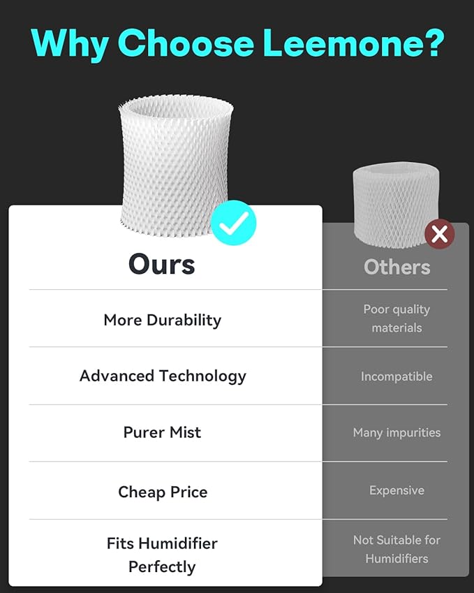 - 【EXCELLENT FILTRATION EFFICIENCY】: Our advanced humidifier wicking technology changes the filter to a brownish color, indicating that it's working! Our replacement humidifier filter is made of 8-layer mesh paper, which effectively filters out hard minerals in the water. This helps improve sleep quality and creates a more comfortable environment by reducing dry air