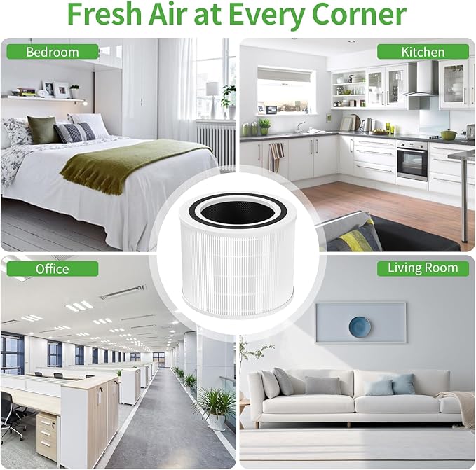 - 【High Efficiency】Fits for LEVOIT filter replacement can captures up to 99.7% of lint, dust, and any small particles down to 0.3 microns in size(μm), and clean unpleasant smells odors, promoting cleaner air and healthier living spaces