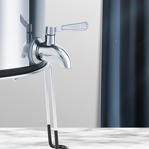 - The outer shell of the water purification bucket is made of 304 food-grade stainless steel, which provides a sturdy and durable construction and is easy to clean. The stainless steel faucet fits perfectly into the bucket without any leakage. In addition, a non-slip bracket and wrench are added for your better installation and operation.