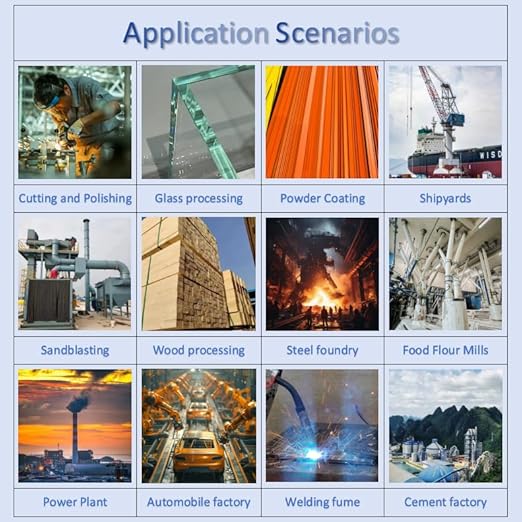 - 【WIDE RANGE OF APPLICATIONS】: Dust extractor filter is mostly used in sand blasting, powder coating, cutting and polishing, metal smelting, wood processing, food flour processing, power plants, cement factories, shipyards, and automobile manufacturing and other industries.