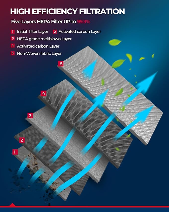 - 2-Layer Activated Carbon: Upgraded version with 2 layers of high-quality coconut shell activated carbon with stronger adsorption capacity, which can effectively remove peculiar smells and nasty odors in the air. Good air permeability, improving the heating and cooling efficiency of the car air conditioner, effectively prevent the musty smell in the car