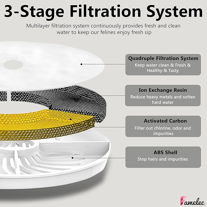 - 💦 Healthier Water for Your Pet – By using FAMELEC filter for catit water fountain filters, you can decrease the risk of urinary tract infections for pets. These filters for catit filter replacement also soften minerals in the water, making it more comfortable for your pet to drink. If you’re seeking a reliable replacement for your current filter, our replacement filters for catit pixi water fountain filter ensures superior filtration and keeps your pet hydrated.