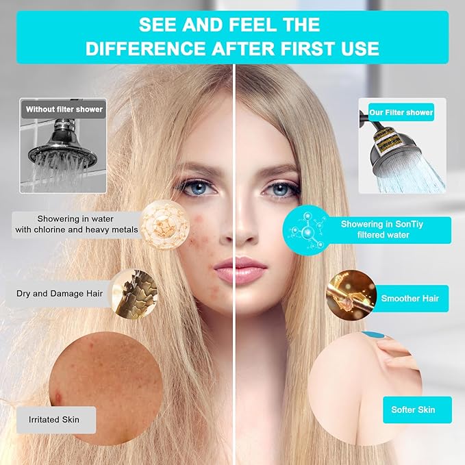 - Enhanced Shower Water Quality - Still struggling with dry hair and dry skin? Our hard water softener shower head filter focus on the basics of de-chlorination and impurity removal and uses scientific standard filling filter materials (included KDF, activated carbon, and calcium sulfite), effectively reduces chlorine, heavy metals and other sediments. NOTE: Our filter do not have other vitamins, minerals(whose efficacy does not last more than a week).