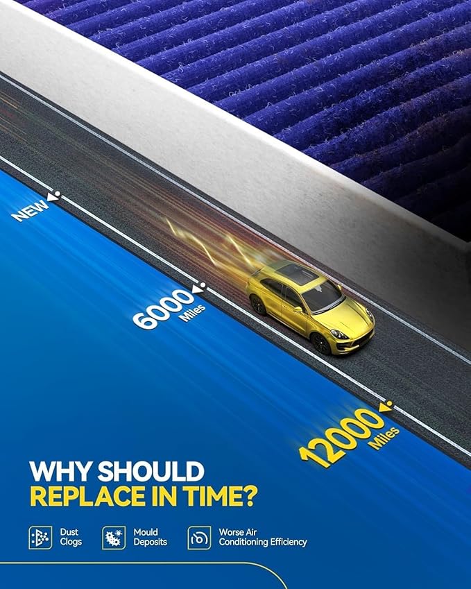 - Warm tip: To ensure that the air conditioning filter provides you with clean air, please recommended replacement every 12 months or 12,000 miles. Please enter your vehicle's year/make/model and then check the fitment