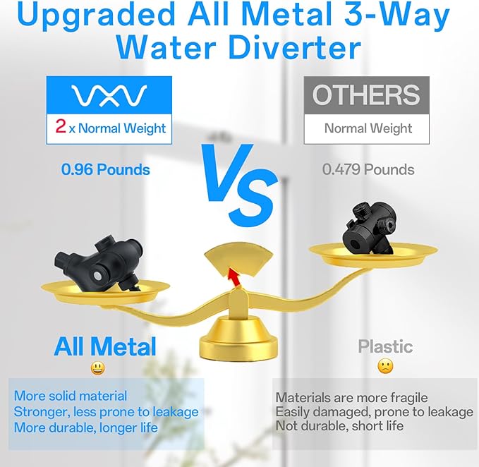 - 【Upgraded 3-Way Water Diverter】: This high pressure rainfall shower head with filters has three combinations, which can be used separately for handheld shower heads water, square rain shower head water, or with double shower head at the same time. The button switch is smooth and convenient