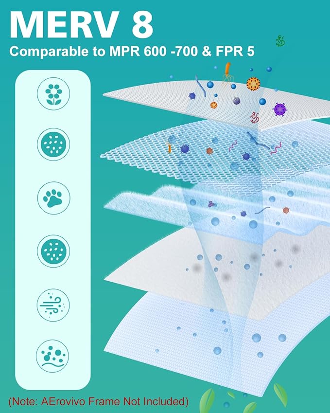 12x12x1 Air Filter Refills, 4 Pack MERV 8 Refills Only for AErovivo Reusable ABS Frame (Not Included)