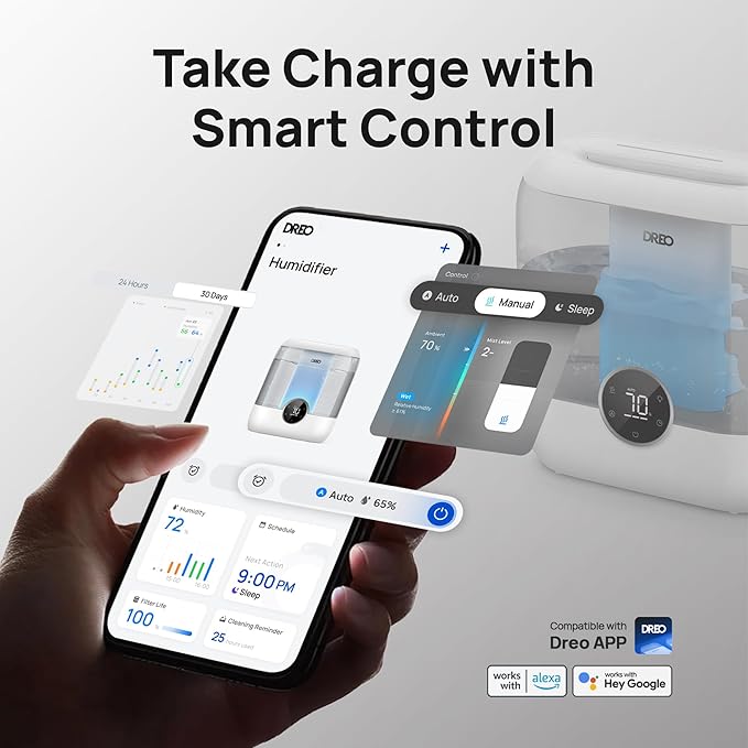 - ððŠðĒðððððŪ ðūðĪðĢðĐð§ðĪðĄ, ðððð§ððŦðð§ ððĪðŠ ðžð§ð: Use the DREO app, voice commands, or Alexa to remotely manage your plant humidifier, Easily monitor indoor humidity and adjust settings to ensure a healthy environment for your family, especially suited for babies, plants, and pets.