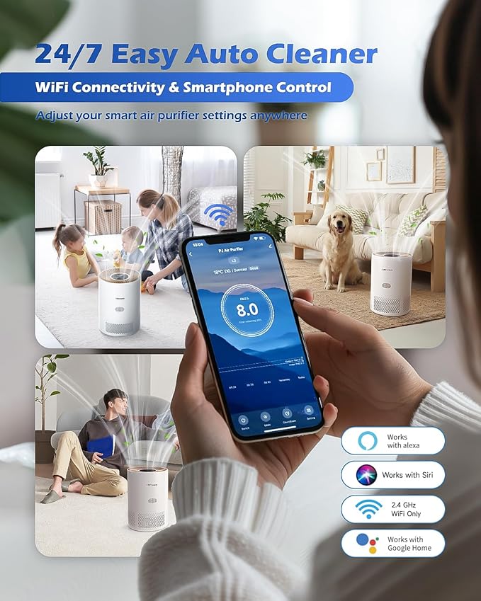 - 【24/7 Easy Auto Cleaner】WiFi connectivity, smartphone remote control, 2/4/8H timer, 4 speed fan settings (low/medium/high/auto), child lock, air quality real-time monitoring. Set it and forget it! Great for anyone seeking to enhance indoor air quality effortlessly.