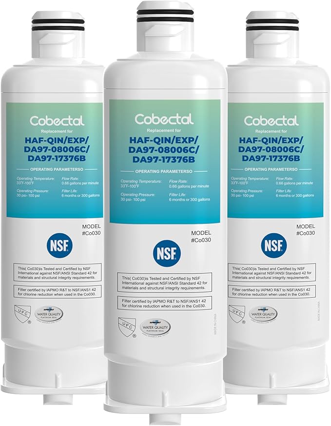 HAF-QIN/EXP Water Filter Replacement for samsung Haf-qin DA97-17376B RS27T5200SR RS22T5201SR RF27T5241SR RF23M8070SG DA97-08006C Rf28T5001SR RF27T5201SR RF27T5201SG Water Filter,3 pack,by Cobectal