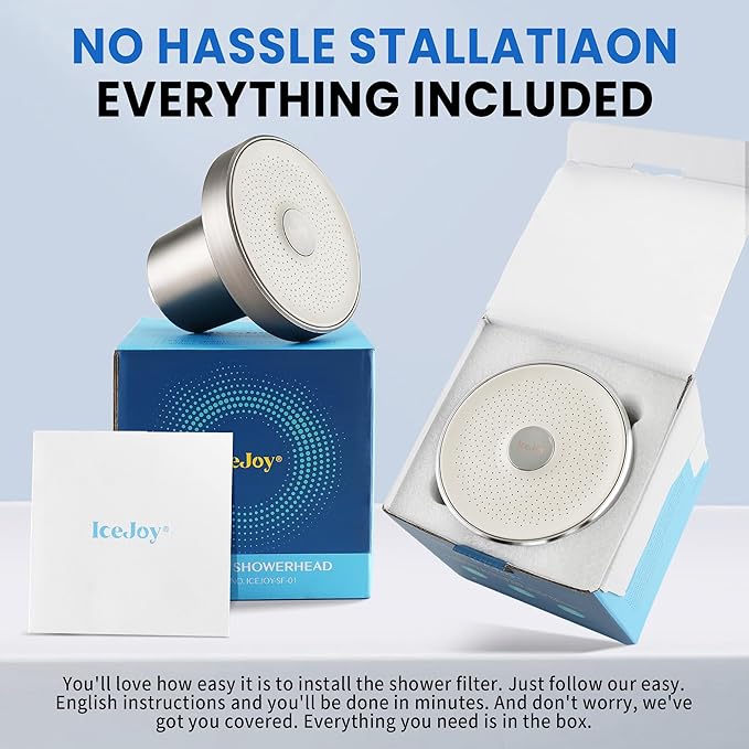 - 🚿「Transforms Your Skin And Hair」- IceJoy shower head with filters effectively removes chlorine, heavy metals, and other contaminants that contribute to common skin and hair issues like dryness, damage, color changes, and irritation.