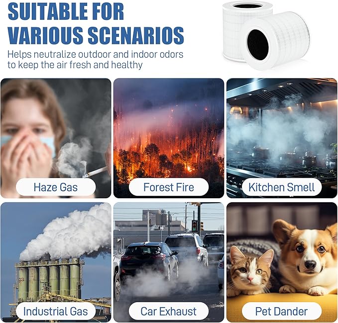- WIDELY USED: 3-in-1 filter replacements feature a combination of effective particles that quickly adsorb automobile exhaust, haze and pollutants from any other area. After a period of time, you will realize the powerful adsorption function of this filter, your nose will not be sensitive anymore, and your respiratory tract will be smoother and more comfortable. A2001 air purifier filter replacement is suitable for kitchen, living room, bedroom and for most people such as babies, pollen allergy, elderly and so on