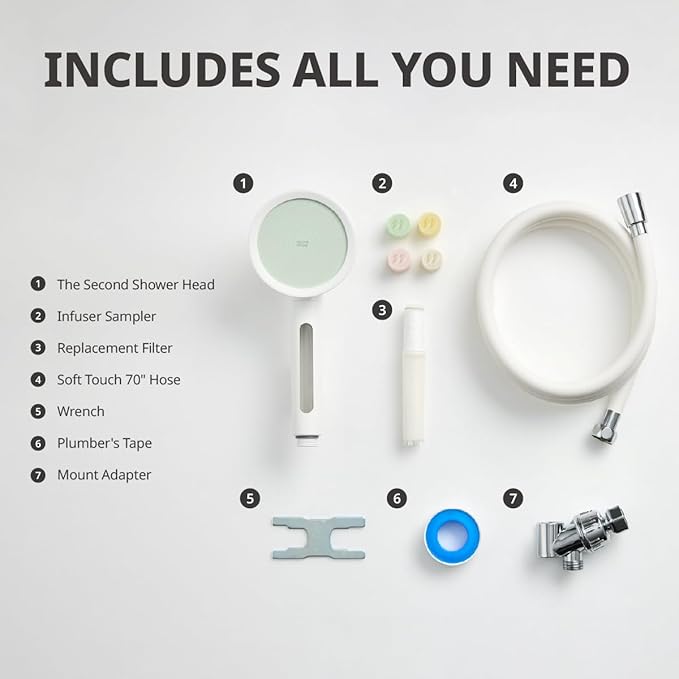 - ALL-INCLUSIVE SHOWER FILTER PACKAGE – A NEW HOME ESSENTIAL: The Second Shower Head is perfect for new homeowners, featuring a handheld adjustable design with a long hose, advanced filtration, and water softener functionality. Enjoy clean, refreshing water with an easy installation guide for a hassle-free upgrade.