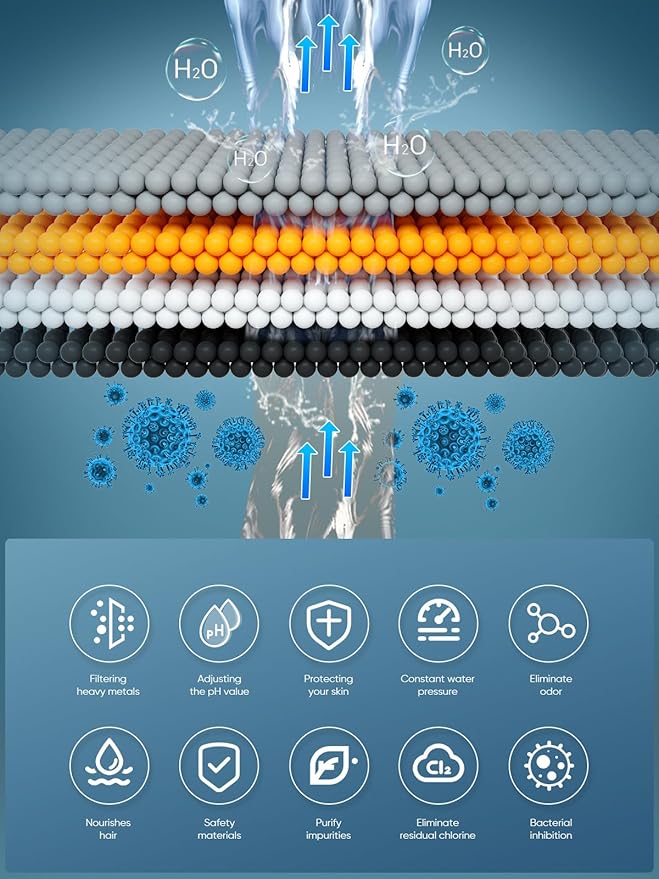 - A BODY CARE ESSENTIAL: The high-output shower filter removes unpleasant odors and impurities, quickly relieves fatigue, slows aging and smoothes skin. This shower filter water softener moisturizes, purifies, softens and provides the best feeling for sensitive skin.