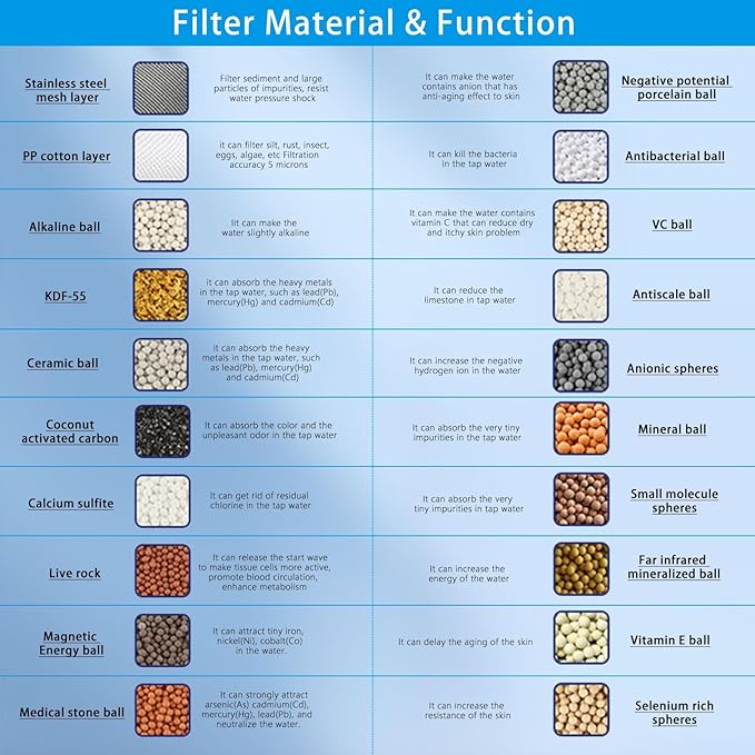 - 【22 Stage Shower Filter 】Step into a realm of pure aquatic delight with our groundbreaking 22-stage shower filtration system. Our cartridge has 22 stages of filtration for effectively reduces chlorine, heavy metals, fluoride, lime and scale in water. The multi-stage process ensures a pristine flow, providing you with a shower experience that goes beyond cleansing to pure rejuvenation
