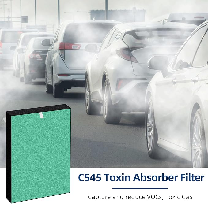 - [Effective Filtration]: C545 Replacement Filter provide 2-in-1 True HEPA System High Efficiency Activated Carbon Filter, H13 Grade True HEPA Filter. Upgraded C545 Toxin Absorber Replacement Filter longer use time and helps you absorb 99.7% of the suspended with a size of 0.3 microns effectively, reduce unwanted odors in your living spaces, effective to absorb and chemically decompose pet odors, cooking smells.