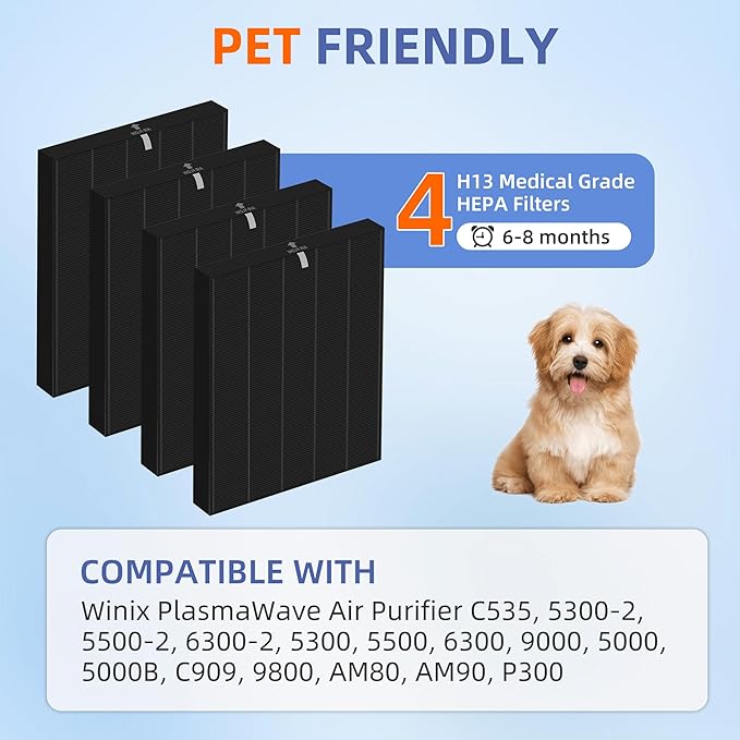 - 【COMPATIBLE AIR PURIFIER MODELS】:Pulluty 115115 HEPA Filter A Widely compatible with Winix air purifier models C535 5300 5300-2 6300 6300-2 P300 AM90 9000 5000 5000B C909 9800.