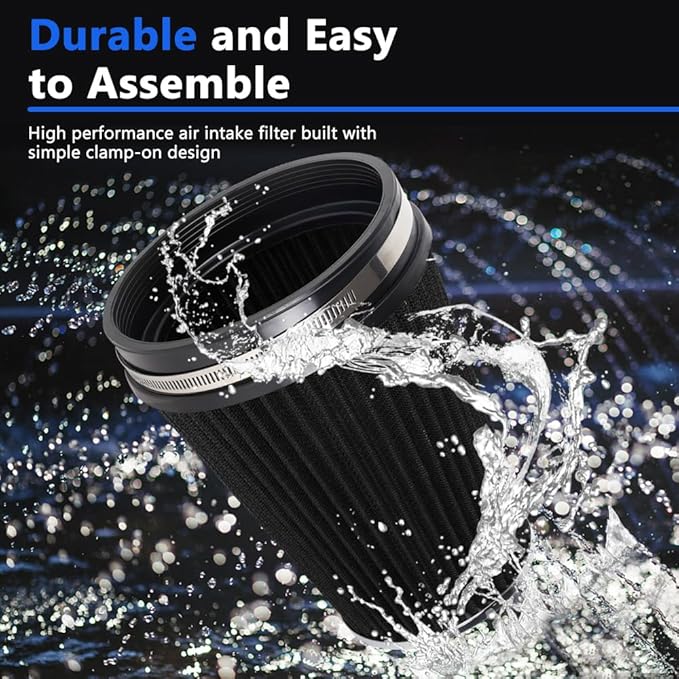 MUGE RACING 6" 152 mm High Flow Inlet Air Filter, Air Intake Cone Filter Replacement Performance Washable Clamp-On Dry, 8'' Tall(Black)