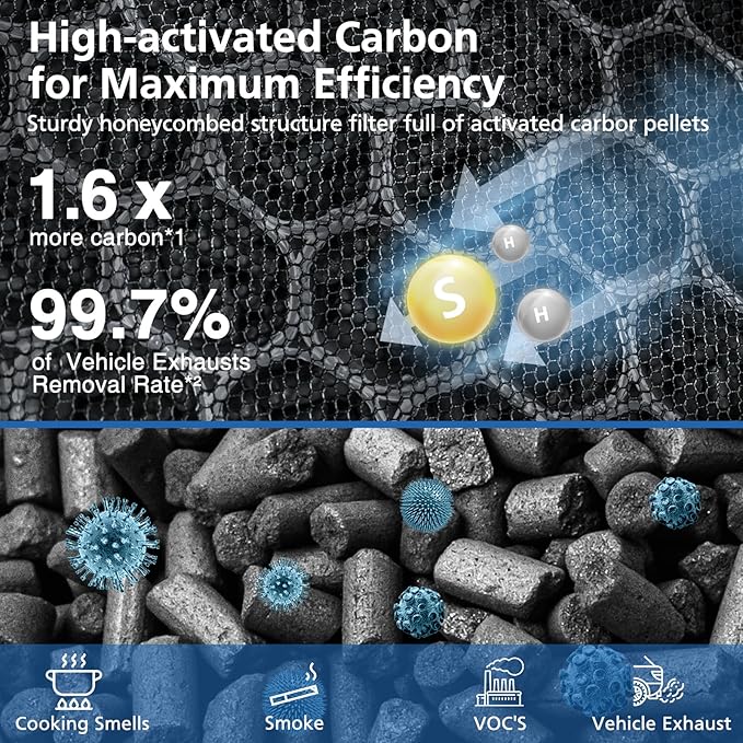 - IDEAL FOR SMOKE, ODORS, AND VOCS: The Vital 200s toxin absorb replacement filter features a custom high-efficiency activated carbon filter which helps neutralize vehicle exhaust, smoke, and fumes—perfect for people living in urban and industrial areas