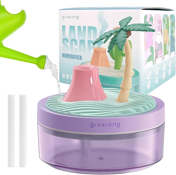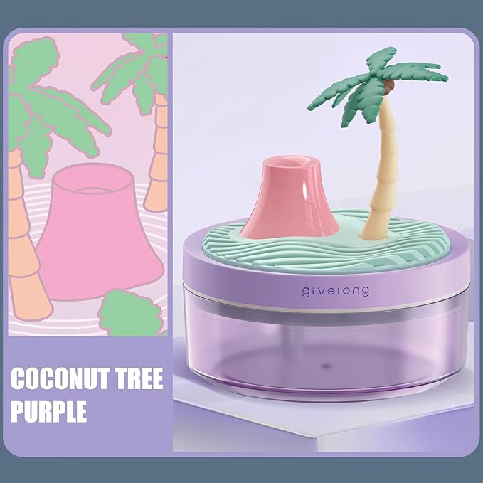 - Cocount Tree Design: This protable humidifiers for bedroom features an eye-catching cocount tree design,you can bionic watering plant, the top fill water. it is convenient to add water without having to open the lid of the humidifier, not only adds a touch of nature to your space but also serves as a charming decorative piece.