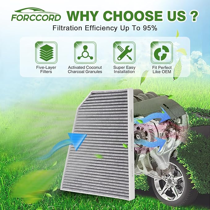 - 【5 Layers Newly Material】Compare with Standard cabin air filter, we adopts a newly upgraded large-capacity five-layer blue silk filter cloth+melt blown cloth, Double layer HEPA filter,which can remove 99.9% of harmful pollutants(dust, pollen,exhaust, etc).