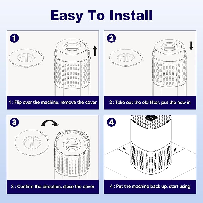 - ππ’π¦π§-ππππππ§ππ©π ππ’π’ππ¦ - Package includes 4 x hepa 14 replacement filters. We recommend you to replace every 6-8 months for optimal performance (depend upon your environment and usage). Easy to replace and disposable, no tools required. Simply take out and replace from your machine unit when needed