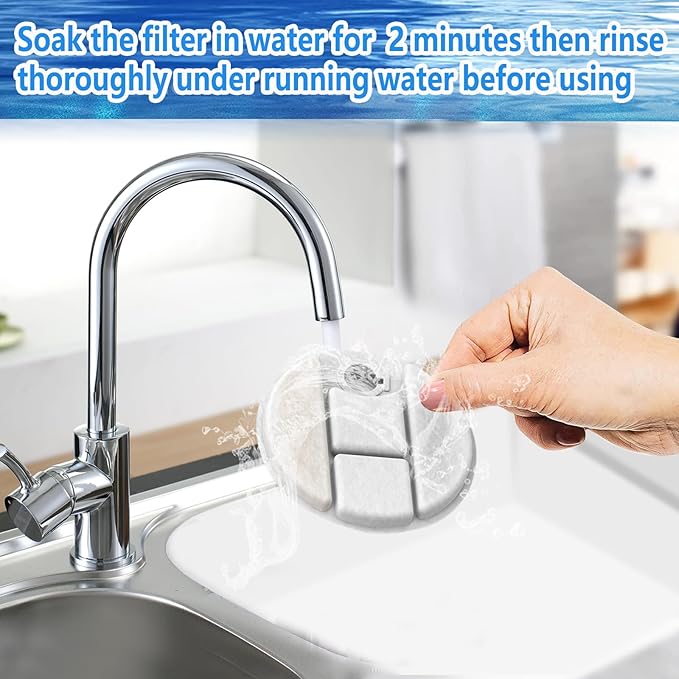 - 【Suggestion】 To get the best results, please soak your filter in water for 5 minutes before use. Rinse the filter with running water to clear away excess carbon dust before use. We recommend replacing the filter every 2 to 4 weeks, depending on how many dogs are using the fountain.