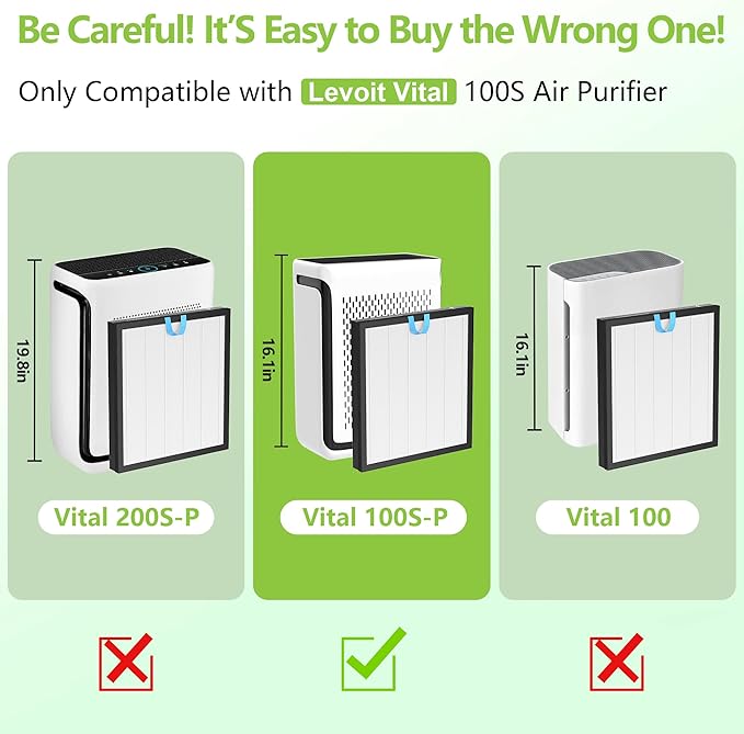 - 【Fit for LEVOIT Vital 100S】This Vital 100S replacement filter is compatible with LEVOIT Smart Vital 100S Air Purifier. Part # Vital 100S-RF. Our Vital 100S filter set keeps your Vital 100S air purifier at its best working efficiency and capacity, helps your family breathing fresher and cleaner air all the time.iSingoione Vital 100S filter has the same quality and function as the original, we have tested it before for sale, please don’t worry to buy. ⚠️Warm Tip: (Not fit for Levoit Vital 100 and Levoit Vital 200S Air Purifiers, please check your purifier model before ordering.)