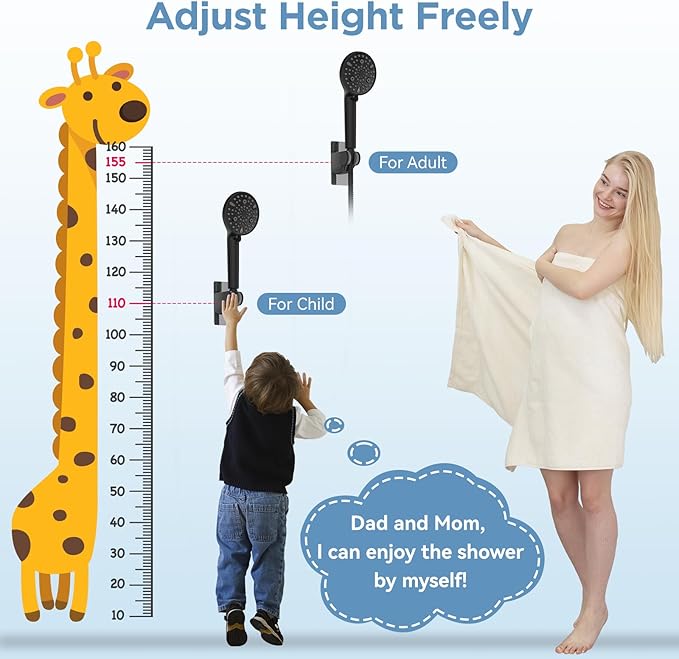 - Adjustable Height and Angle Design: Unlike other extendable arms that tend to fall off, our 8-inch rain shower head allows you adjust rainfall spray angle with just one-hand. The package includes two adhesive shower head holders, flexibly meet the shower needs of each family member with different heights.