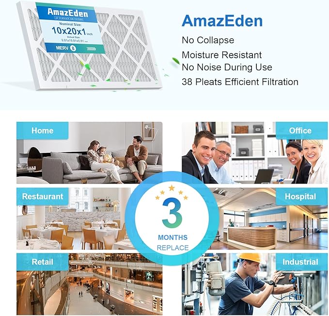- The air conditioner filter 10x20x1 can be installed in minutes without the use of any tools. Friendly tips: Each AmazEden air filter is recommended to be changed every 3 months or sooner for optimal performance.