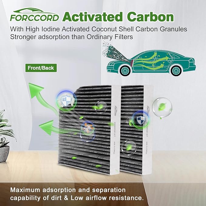- 【5 Layers Newly Material】Compare with Standard cabin air filter, we adopts a newly upgraded large-capacity five-layer blue silk filter cloth+melt blown cloth, Double layer HEPA filter,which can remove 99.9% of harmful pollutants(dust, pollen,exhaust, etc)