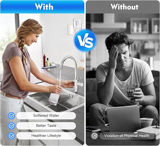 - 【Automatic Operation】: It can automatically start the regeneration process according to the flow rate or time setting. You only need to add salt to the salt tank regularly, the rest of the work is done automatically by the water softener, saving time and effort.