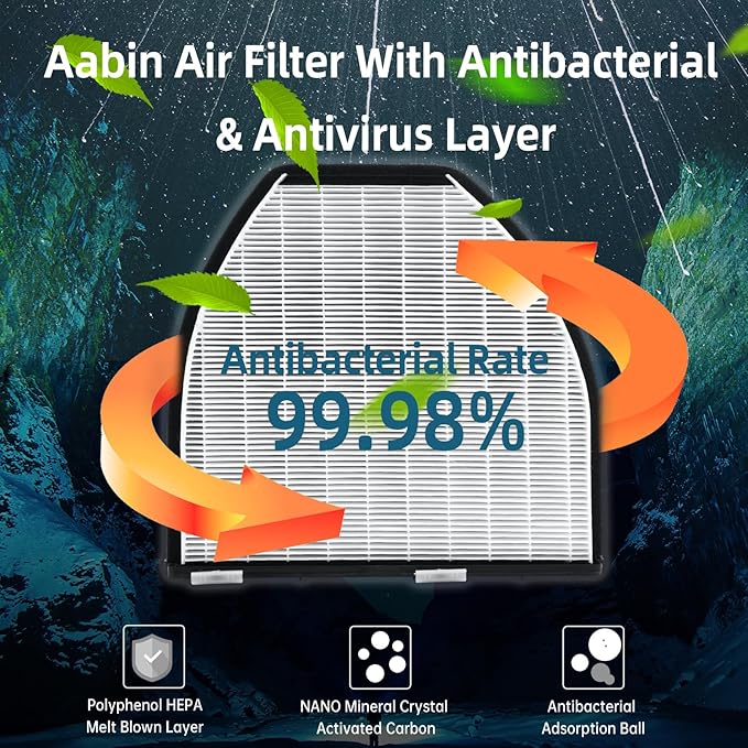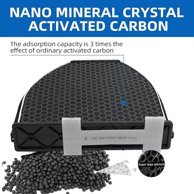 - 【Honeycomb Design HEPA Filter Layer + Activated Carbon】: With high density electrostatic electret filter and special Honeycomb Design could more effectively adsorb particles and gases, filter particles above 0.3 microns in 30mins.
