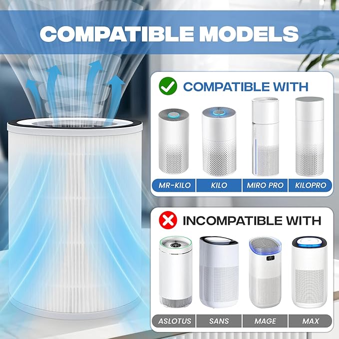 - 【Perfect Fit】The filter is perfectly compatible with Afloia KILO, KILO PLUS, KILO PRO, MIRO, MIRO PRO Air Purifier and MORENTO MR-Kilo, Kalo Air Purifier. Not applicable to Fillo/Allo/Holo/COLIN MAX/MAGE/MAGE PRO, Please confirm your machine model before purchasing.