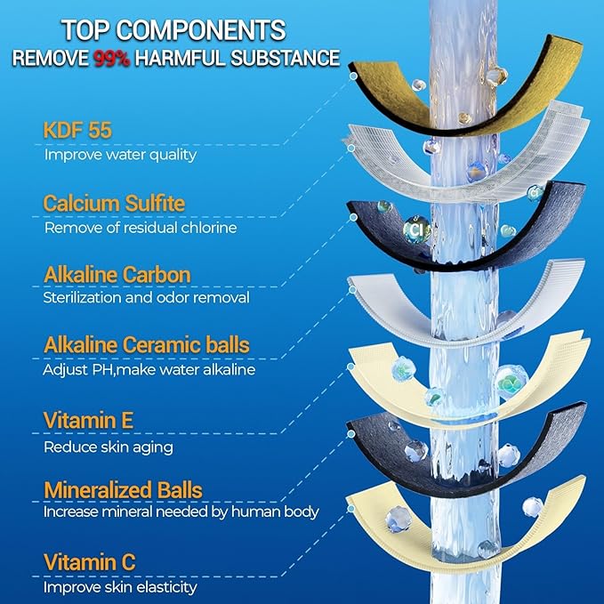 - CONSISTENT WATER PRESSURE: Enjoy a powerful and uninterrupted shower experience with our hard water shower filter. Even with filtered water, our product maintains consistent water pressure, leaving behind fewer bath residues and ensuring a refreshing experience every time.