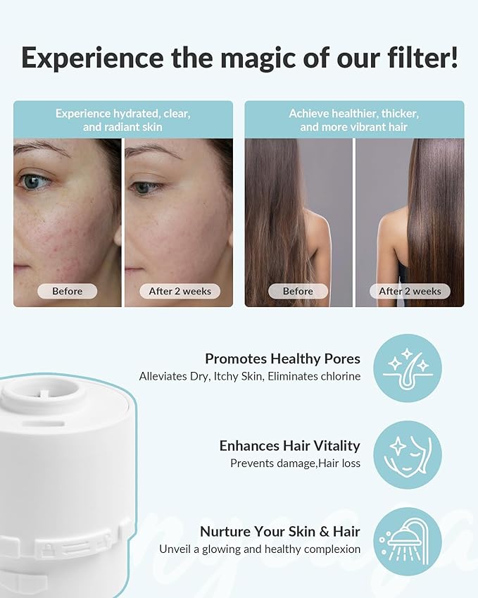 - 【Skin-Loving Filtration –Long-Lasting, Hassle-Free Protection】Built to last, this high-efficiency filter offers twice the lifespan of ordinary shower filters—giving you uninterrupted protection from chlorine and heavy metals for up to 3–4 months. Fewer replacements, smoother showers, healthier skin.